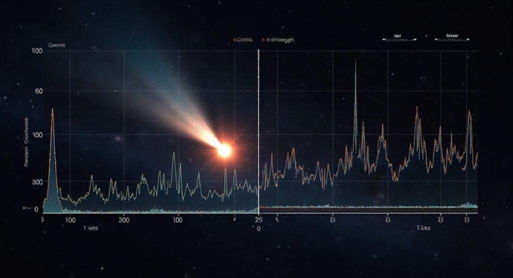 Comparado a eles, o 3I/ATLAS se comporta de maneira ainda mais enigmática: seu brilho oscila de forma irregular e a trajetória sugere pequenas acelerações inexplicáveis, não atribuídas à liberação de gases como ocorre com cometas comuns.