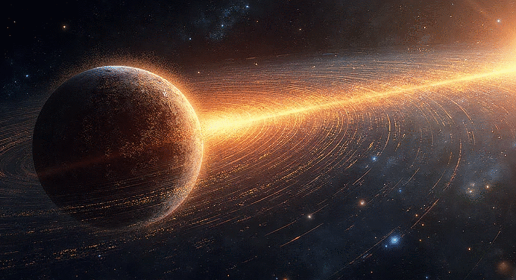Imagens do telescópio James Webb mostram partículas de poeira ao redor do 3I/ATLAS organizando-se em camadas concêntricas. Algumas partículas até se movem contra a radiação solar — algo que a física convencional não explica sem forças externas.